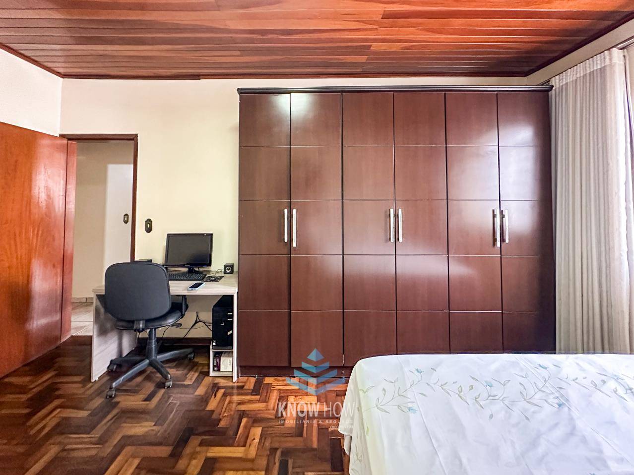 A casa é composta por 4 quartos, sendo 2 suítes (um desses quartos é atualmente utilizado como sala de TV e estudos), super espaçosos, o que a difere dos demais imóveis da região. Uma sala de estar intimista, banheiro social, poço de ventilação que traz frescor e iluminação ao imóvel, e uma cozinha super equipada em armários e com abundante espaço, além de dependência de serviço completa com banheiro e despensa.